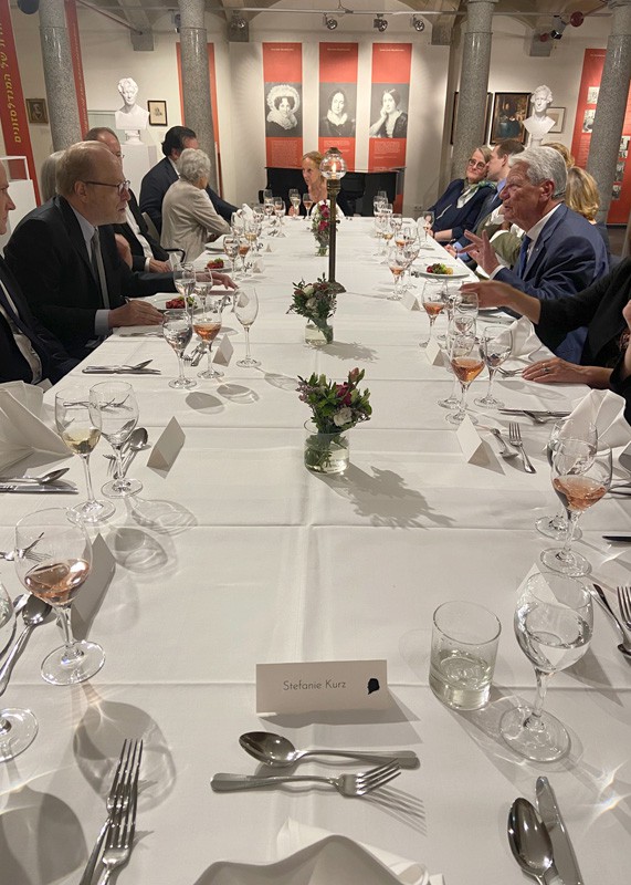 Anschließend lud das Jüdische Museum Berlin die Mendelssohn-Verwandtschaft zu einem Empfang in den Glashof des Museums ein.
