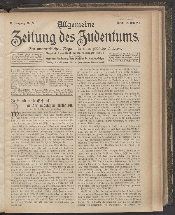 Allgemeine Zeitung des Judentums 12.Juni 1914, Nr. 24 Seite 227 bis 288