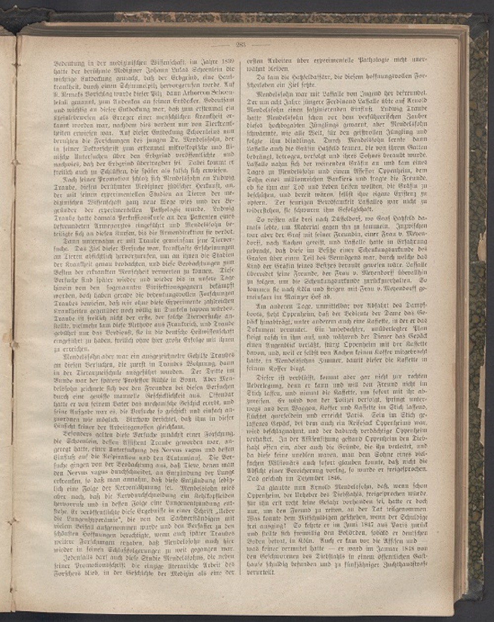 Der bevorstehende fünfzigjährige Todestag Lassalles wird auch die Erinnerung an den Berliner Arzt A R N O L D M E N D E L S S O H N wachrufen, der an dem berühmten Kassettendiebstahl für die Gräfin Hatzfeld beteiligt war, und der einzige von allen denen gewesen ist, die mit diesem Diebstahl zu schaffen hatten, der schwere Strafe erlitt und darüber zugrunde ging, obwohl er zweifellos der Unschuldigste war.