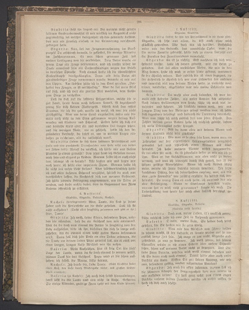 Valeria: Mein Rachelchen, hier ist kein Ort für dich! Sage der Tante, wenn du sie noch einmal so nennen willst, schönen Dank für das Geschenk. Papa wird es dir schon aufheben; ich selbst, die Mama, bitte darum.