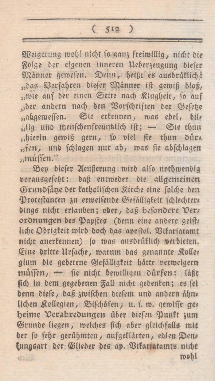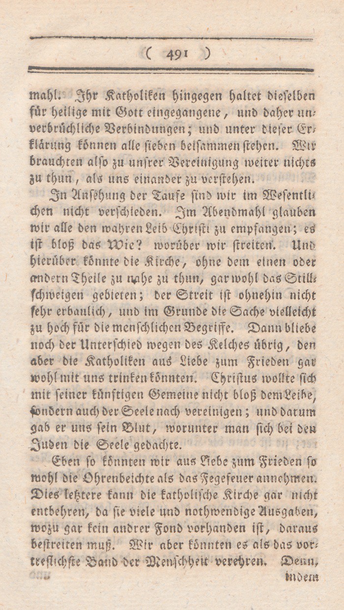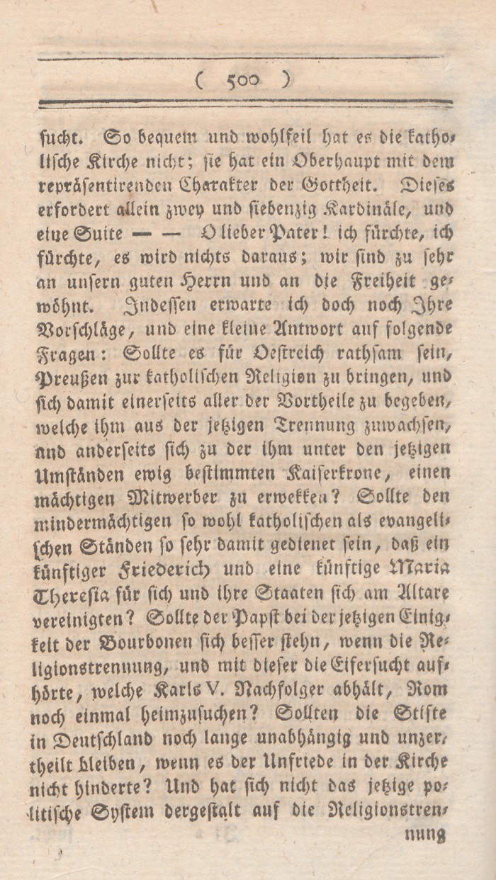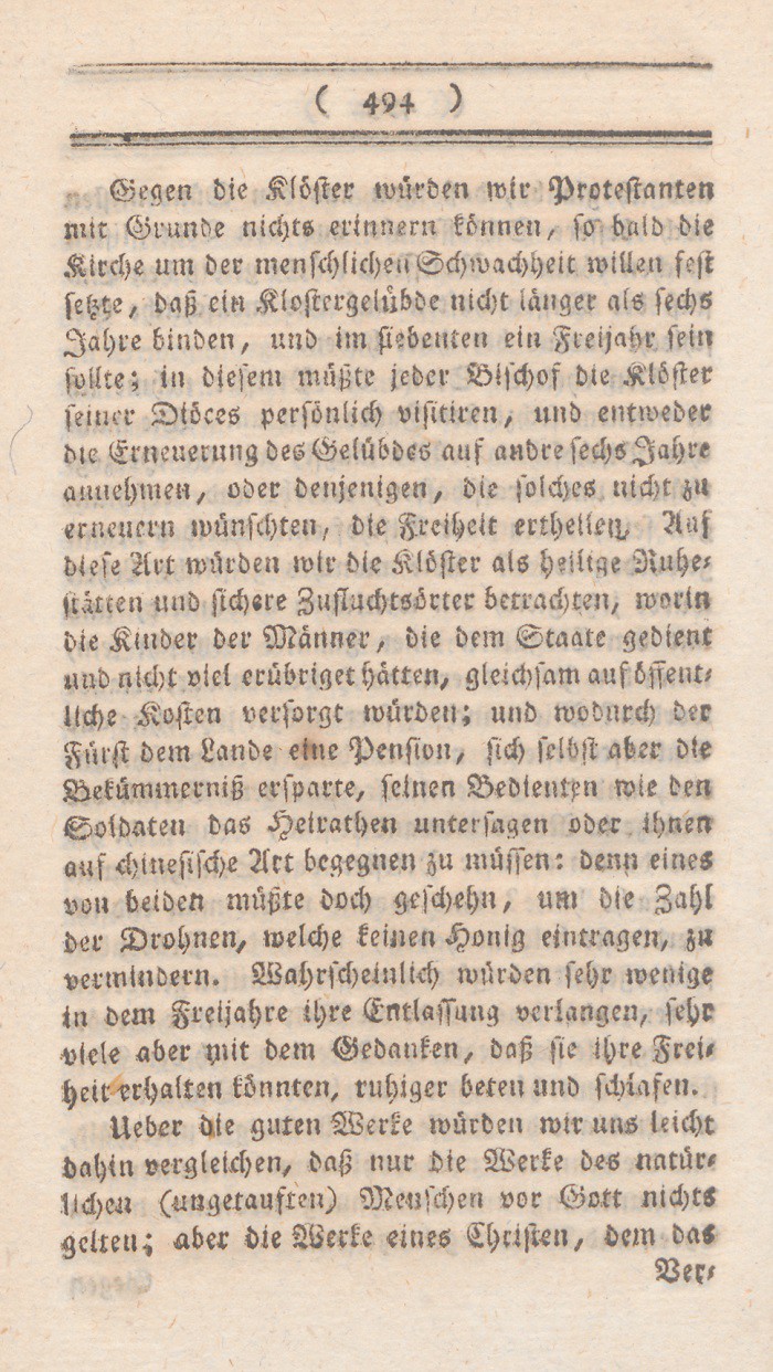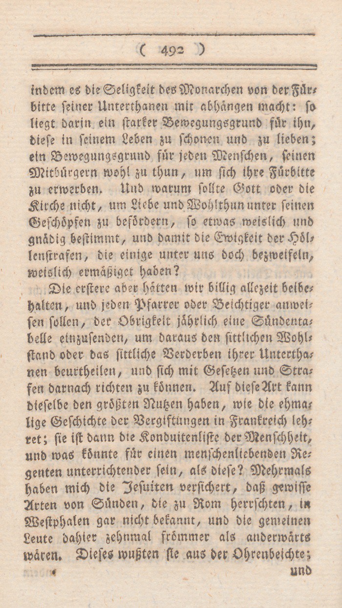 Sollte man, wenn man solche Thatsachen itziger Zeiten liest, glauben: unter kultivirten Nationen, unter Christen, zu sein? – Kann man aber, wenn man der Quelle dieser Greuel nachdenkt, alsdenn wohl noch der Behauptung beipflichten: daß die Beschäftigungen mancher geheimen Gesellschaften zwar unvernünftig, aber nicht böse, wären?
