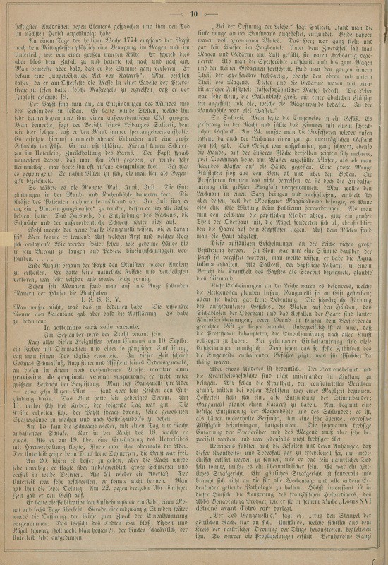 „Der Tod Ganganelli’s,“ sagt er, „trug den Stempel der göttlichen Rache klar an sich. Umstände, welche sichtlich aus dem Kreis der natürlichen Ordnung der Dinge heraustreten, begleiteten ihn. So wurden die Prophezeiungen erfüllt. Bernhardine Ranzi ...