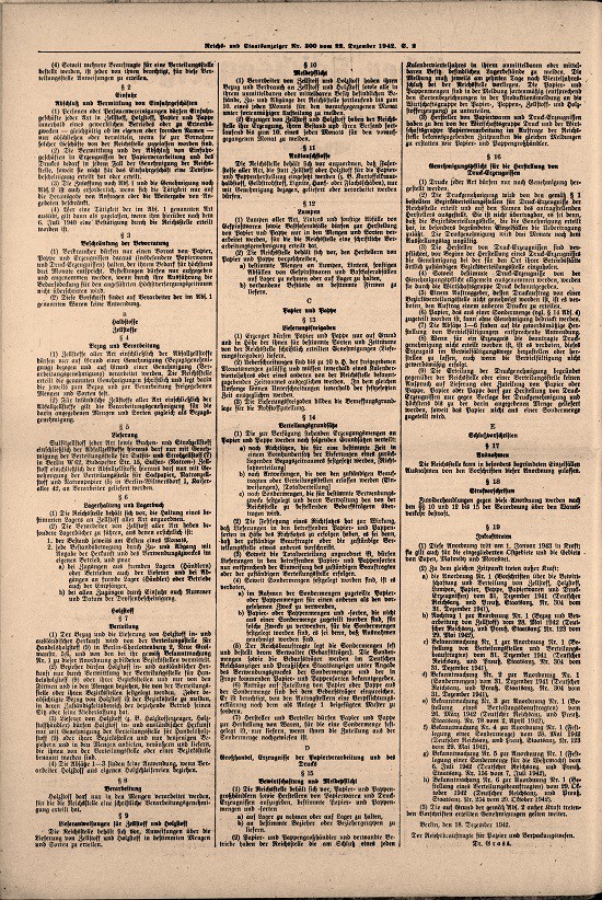 der Reichsstelle für Papier und Verpackungswesen ( Bewirtschaftung und Verteilung von Zellstoff, Holzstoff, Lumpen, Papier, Pappe, Papierwaren und Druck- Erzeugnissen)
