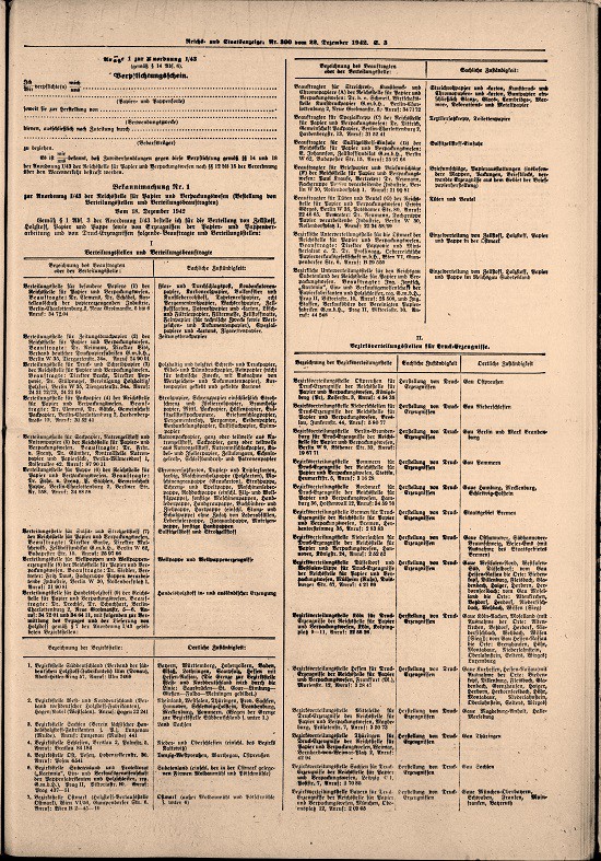 Bekanntmachung Nr.2 zur Anordnung I/43 der Reichsstelle für Papier und Verpackungswesen ( Sondermengen). Vom 18. Dezember 1942.
