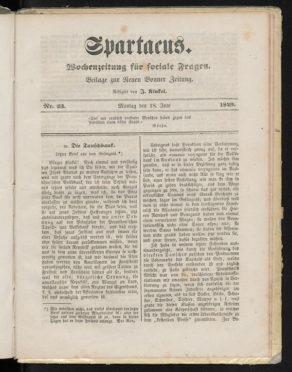 Spartacus, Sonntagsbeilage der Neuen Bonner Zeitung 18. Juni 1849 Nr. 23 Seite 1 bis 4